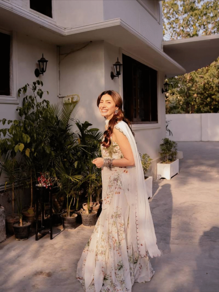 Mahira Khan once again mesmerized her fans as she appeared in an elegant off-white traditional outfit, radiating poise and timeless charm. The superstar shared a carousel of photos and a short video on Instagram, showcasing her beautifully embroidered three-piece suit that instantly captured attention.