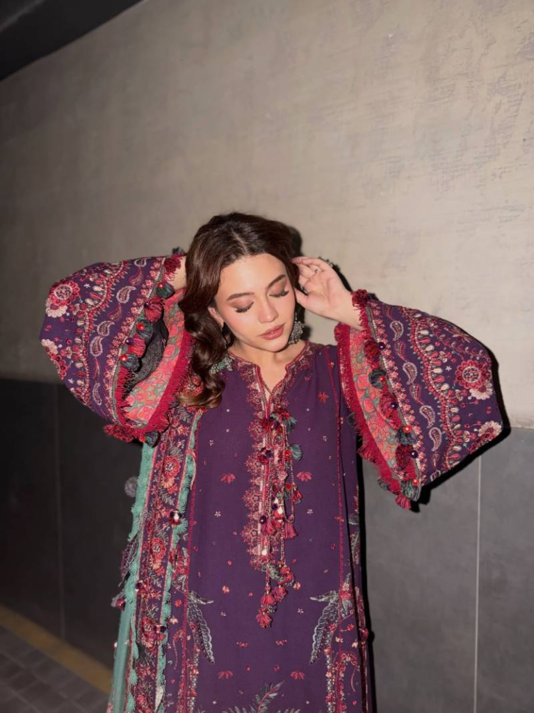 Zara Noor Abbas gave fans an exclusive glimpse into her busy yet stylish routine as she geared up for her upcoming show in Lahore. The actress shared a carousel of Instagram photos captioned: “Sardi. Baarish. And show ready for Lahore. Aur uske badh foran se flash wali pictures @hussainrehar.official @aleekhanmakeup,” highlighting her preparation in the chilly, rainy weather.