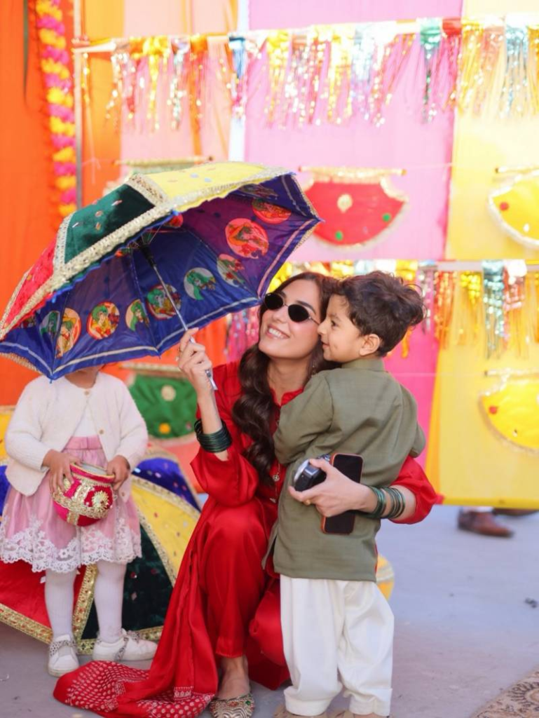 In her latest carousel, Maya shared snapshots surrounded by traditional umbrellas and bright marigolds, captioning them: “These are the moments we live for…!!” Dressed in a red kurta set from Zara Shahjahan’s Basant ’26 collection, she radiated festive charm while posing effortlessly against Lahore’s lively backdrops.