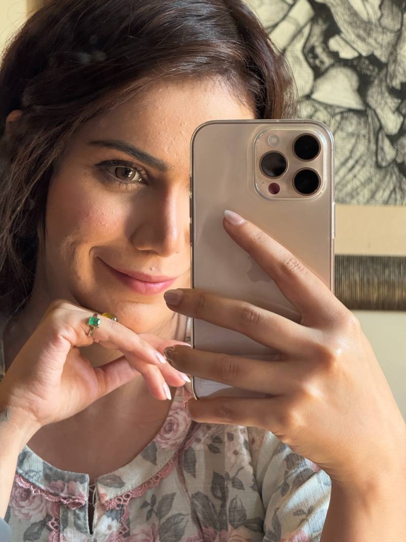 She also included candid moments from her day on set, including a half-eaten sandwich snapshot that highlights the long and demanding filming schedule. In another mirror selfie, she is seen holding an iPhone 15 Pro Max while wearing a cream outfit with soft rose-pink floral accents, further emphasizing her understated style.