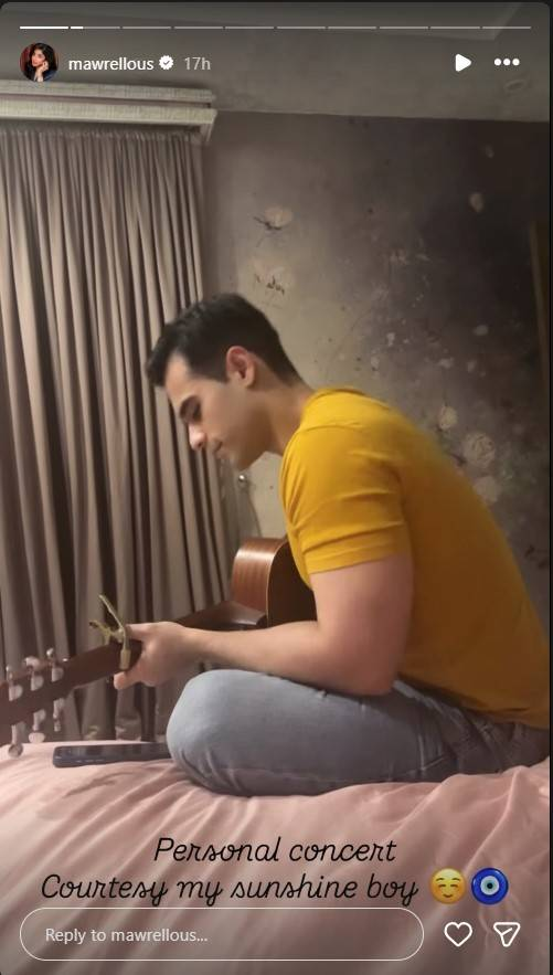 One of the most talked-about moments featured her husband, actor Ameer Gilani, playing an acoustic guitar in a cozy home environment. Describing it as a “personal concert,” Mawra Hocane affectionately referred to him as her “sunshine boy,” a gesture that quickly resonated with fans who admire their relationship.