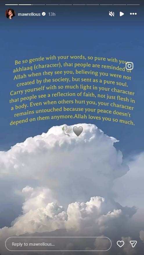 Alongside these personal glimpses, she also shared a reflective spiritual message on her social media story. The note emphasized kindness, inner peace, and maintaining strong character, offering insight into her thoughtful and grounded outlook on life.